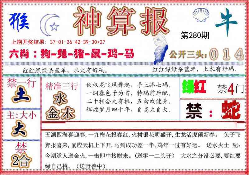 280期 | 羊虎兔鸡牛狗鼠 | 發00准 |